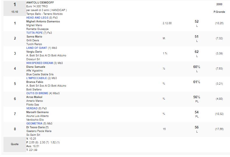 1^ Corsa Premio Anatolu Demidoff vinta da Head and Legs