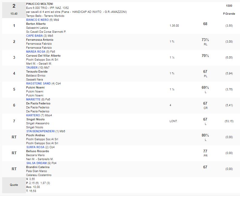 2^ Corsa Premio Pinuccio Molteni vinta da Bianco e Nero