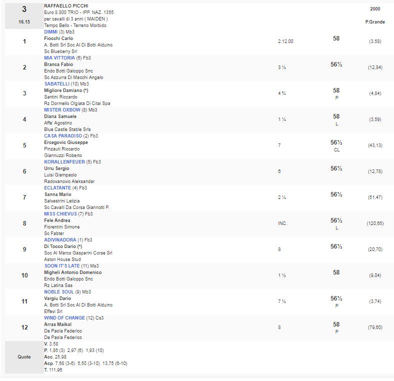3^ Corsa Premio Raffaello Picchi vinta da Dimmi