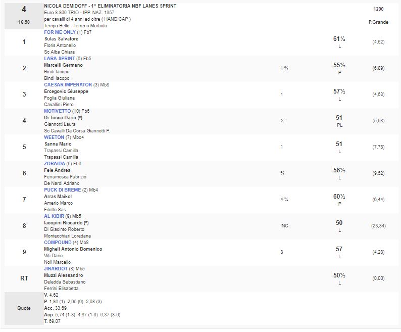 4^ Corsa Premio Nicola Demidoff – 1^ Eliminatoria NFB Lanes Sprint