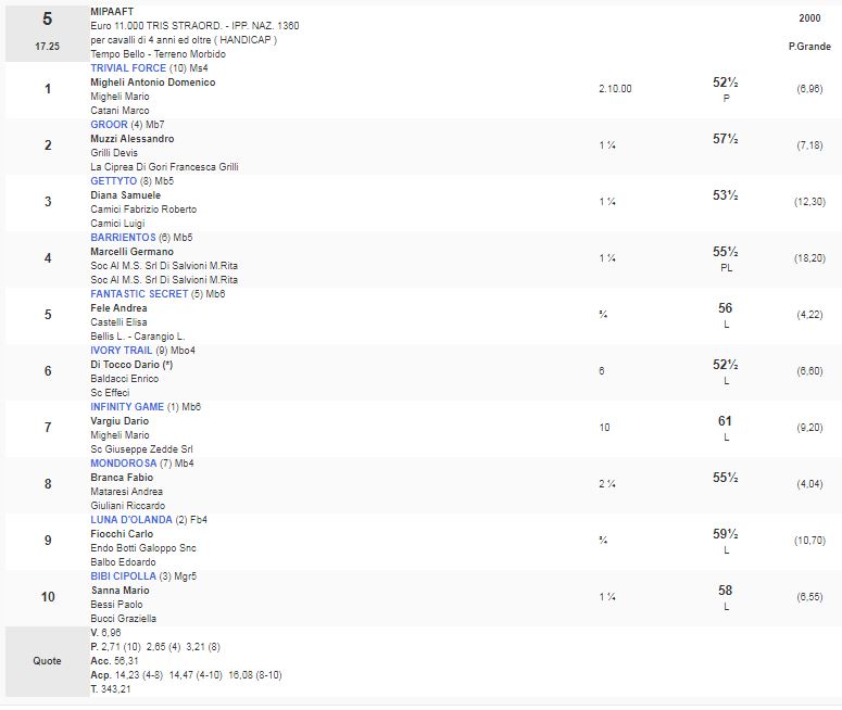 5^ Corsa Premio Mipaaft vinta da Trivial Force