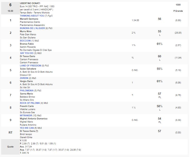 6^ Corsa Premio Ubertino Donati vinta da Thinking About You