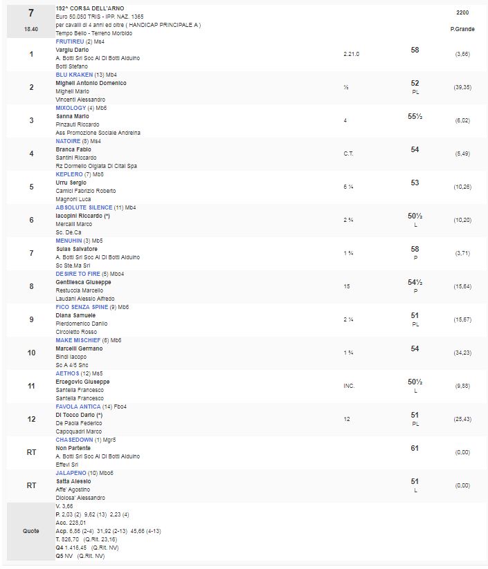 7^ Corsa Premio 192^ Corsa dell’Arno vinta da Frutireu