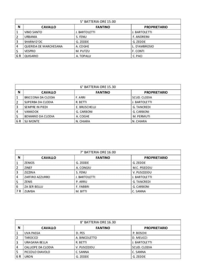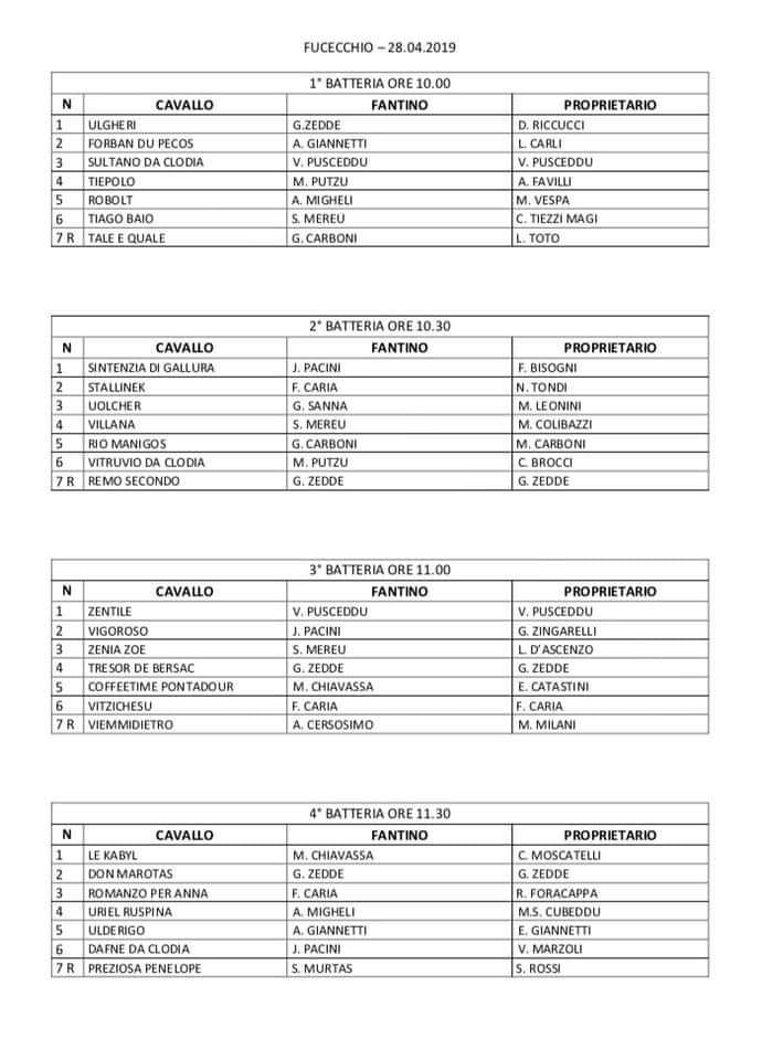Mi sono da poco giunte le Batterie del secondo e ultimo appuntamento con le Corse di Primavera del 28/04.