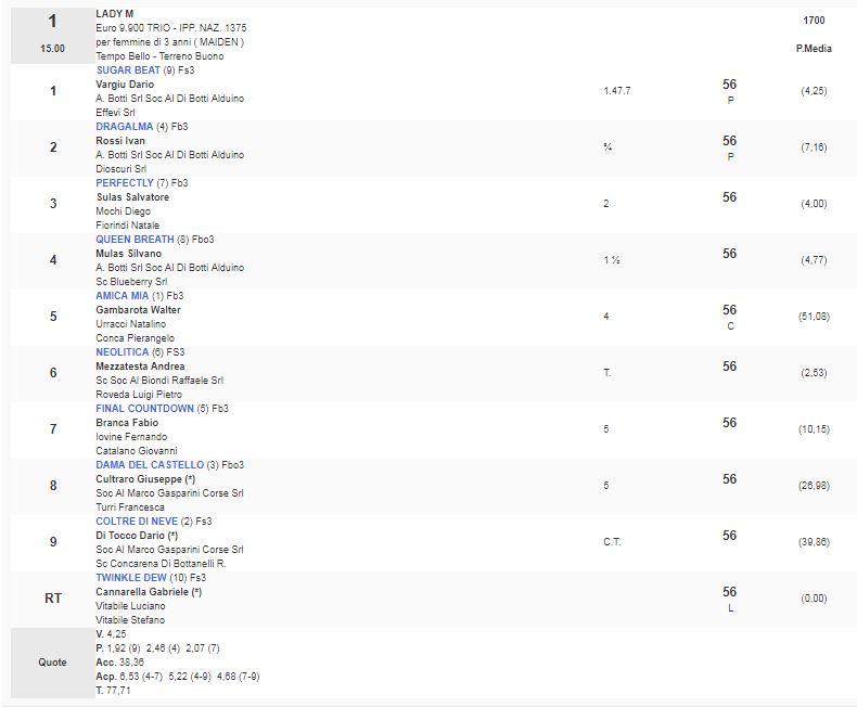 Ippica, Milano: Oggi 27/04 Risultati 1^ e 2^ Corsa Vincono Sugar Beat e Elisa Again 1^ Corsa Premio Lady M vinta da Sugar Beat 2^ Corsa Premio Alberto Zanoletti da Rozzano vinta da Elisa Again Condividi sul web: Fai clic per condividere su Facebook (Si apre in una nuova finestra) Facebook Fai clic per condividere su WhatsApp (Si apre in una nuova finestra) WhatsApp Fai clic per condividere su Telegram (Si apre in una nuova finestra) Telegram Fai clic per condividere su X (Si apre in una nuova finestra) X Fai clic qui per stampare (Si apre in una nuova finestra) Stampa Fai clic per inviare un link a un amico via e-mail (Si apre in una nuova finestra) E-mail Mi piace Caricamento... Correlati