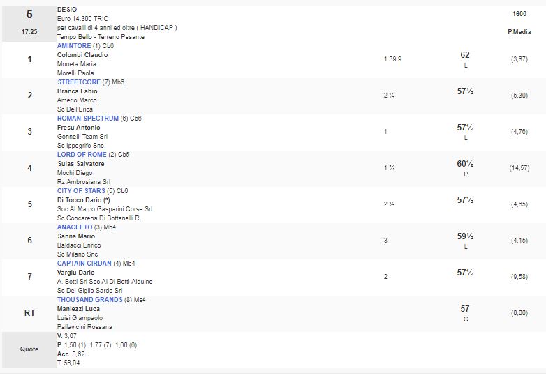 Ippica, Milano: Oggi 27/04 Risultati 5^ e 6^ Corsa Vincono Amintore e Gausar 5^ Corsa Premio Desio vinta da Amintore 6^ Corsa Premio Bovisio Masciago vinta da Gausar Condividi sul web: Fai clic per condividere su Facebook (Si apre in una nuova finestra) Facebook Fai clic per condividere su WhatsApp (Si apre in una nuova finestra) WhatsApp Fai clic per condividere su Telegram (Si apre in una nuova finestra) Telegram Fai clic per condividere su X (Si apre in una nuova finestra) X Fai clic qui per stampare (Si apre in una nuova finestra) Stampa Fai clic per inviare un link a un amico via e-mail (Si apre in una nuova finestra) E-mail Mi piace Caricamento... Correlati