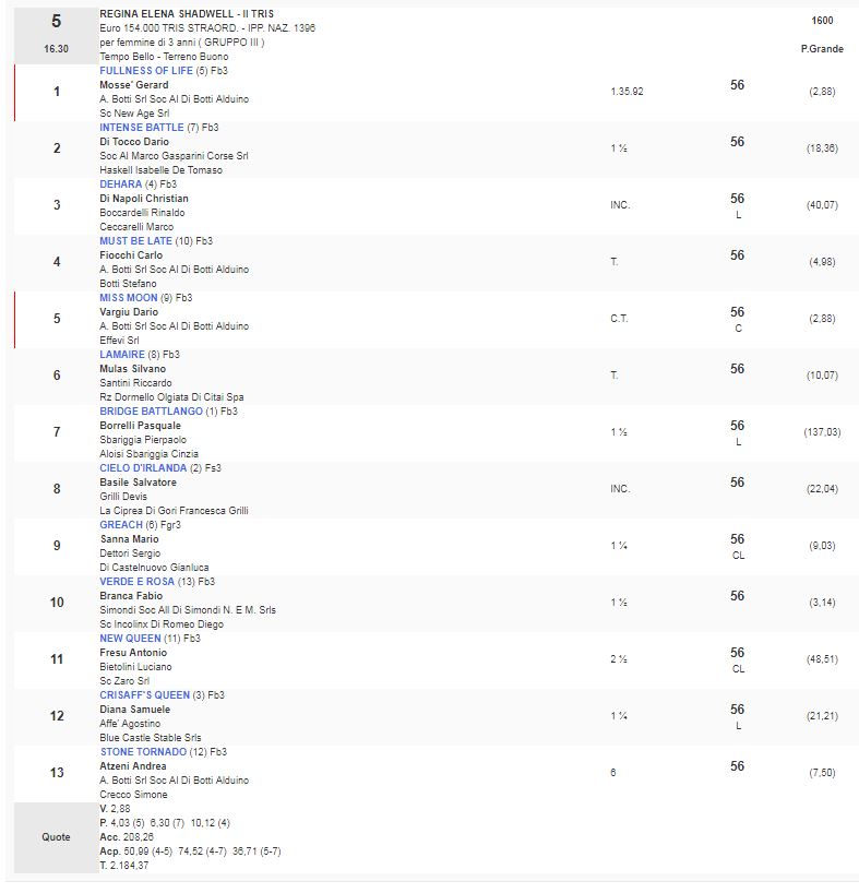5^ Corsa Premio Regina Elena Shadwell – II Tris vinta da Fulness of Life