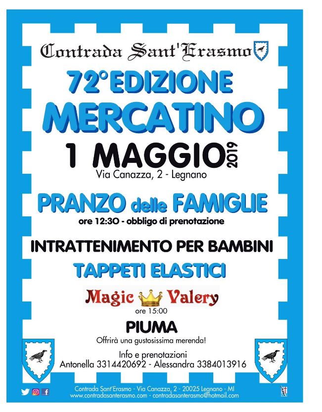 Il pomeriggio sarà poi interamente dedicato ai più piccoli con intrattenimento e divertimento in stile Sant’erasmo, con lo spettacolo del Mago Valery e i tappeti elastici!