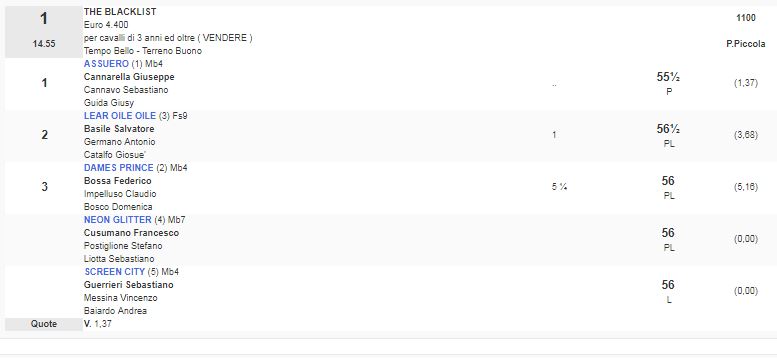 Ippica, Siracusa: Oggi 01/05 Risultati 1^ e 2^ Corsa Vincono Assuero e Coach Me Softly 1^ Corsa Premio The Blacklist vinta da Assuero 2^ Corsa Premio Gomorra vinta da Coach Me Softly Condividi sul web: Fai clic per condividere su Facebook (Si apre in una nuova finestra) Facebook Fai clic per condividere su WhatsApp (Si apre in una nuova finestra) WhatsApp Fai clic per condividere su Telegram (Si apre in una nuova finestra) Telegram Fai clic per condividere su X (Si apre in una nuova finestra) X Fai clic qui per stampare (Si apre in una nuova finestra) Stampa Fai clic per inviare un link a un amico via e-mail (Si apre in una nuova finestra) E-mail Mi piace Caricamento... Correlati