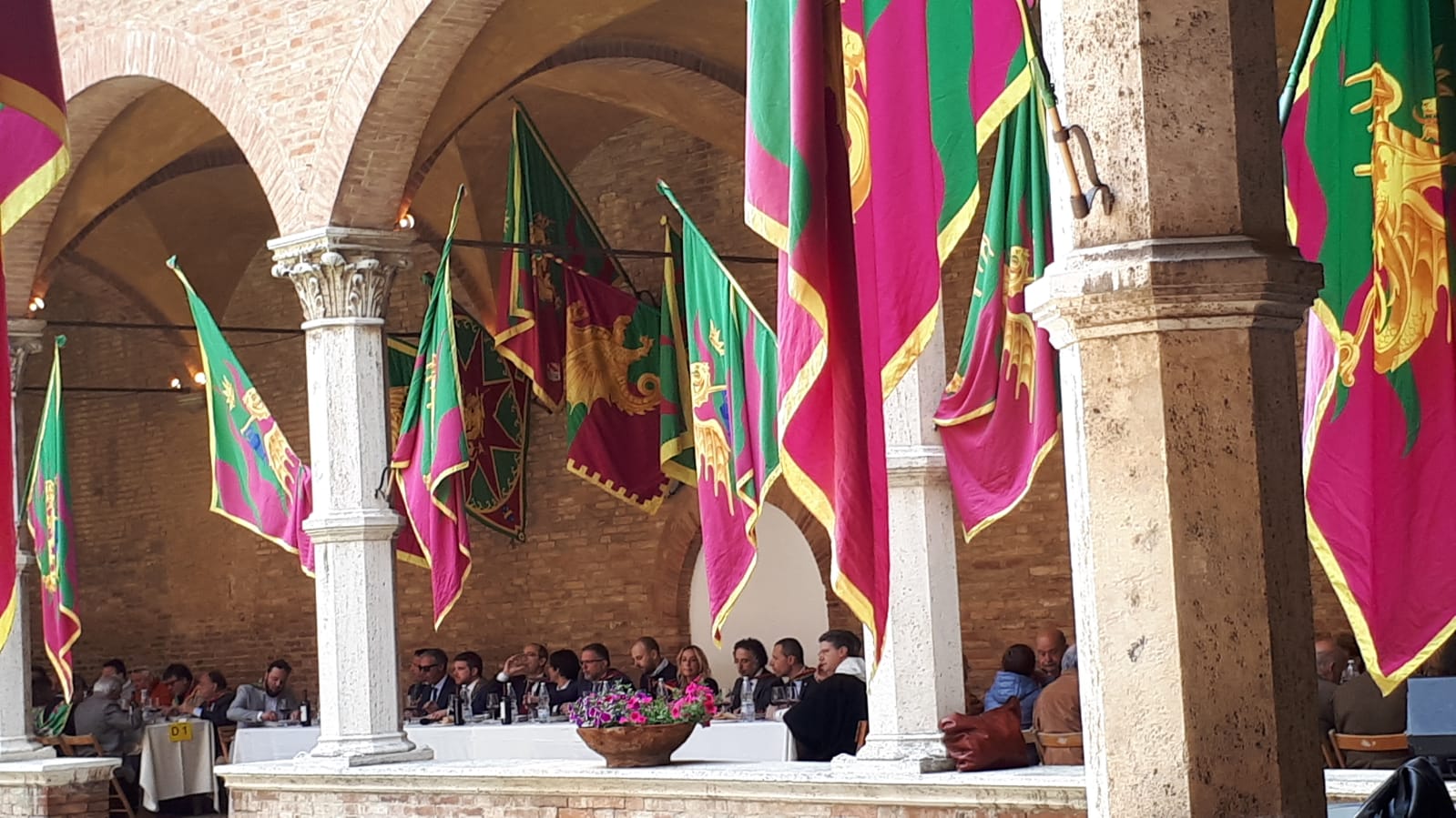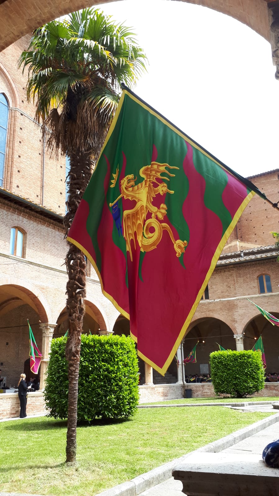 In queste ore è in pieno svolgimento il “Pranzo del Piatto” della Contrada del Drago” per terminare i festeggiamenti per la vittoria del Palio del 02/07/2018. Nella bellissima cornice del Chiostro di San Domenico tanti dragaioli si sono rinuniti per ricordare ancora una volta la bella vittoria riportata sul Campo il 02/07/2018 dal fantino Andrea Mari detto “Brio” in groppa al cavallo Rocco Nice di proprietà di Massimo Marchetti: Tra un canto e un altro tra un brindisi e l’altro veramente un bel pranzo e ancora una volta il popolo del Drago rinuto a festa.