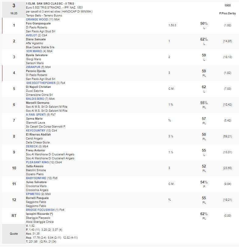 Ippica, Roma: Oggi 07/05 Risultati 3^, 4^ e 5^ Corsa Vincono Orange Wood, Docotor Gianni e Fambrus 3^ Corsa Premio 1 Elim. San Siro Classic – II Tris vinta da Orange Wood 4^ Corsa Premio Agri-Trofeo Bottanelli vinta da Docotor Gianni 5^ Corsa Premio Cape Corss vinta da Fambrus Condividi sul web: Fai clic per condividere su Facebook (Si apre in una nuova finestra) Facebook Fai clic per condividere su WhatsApp (Si apre in una nuova finestra) WhatsApp Fai clic per condividere su Telegram (Si apre in una nuova finestra) Telegram Fai clic per condividere su X (Si apre in una nuova finestra) X Fai clic qui per stampare (Si apre in una nuova finestra) Stampa Fai clic per inviare un link a un amico via e-mail (Si apre in una nuova finestra) E-mail Mi piace Caricamento... Correlati