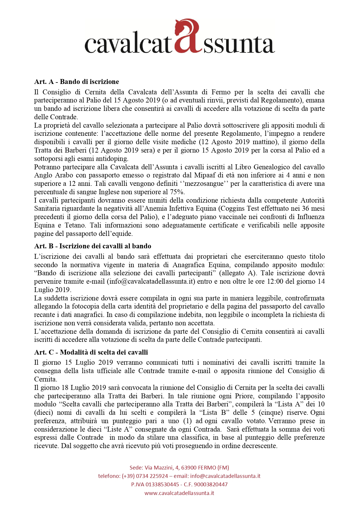 - Allegato A Bando Iscrizione alla selezione cavalli partecipanti