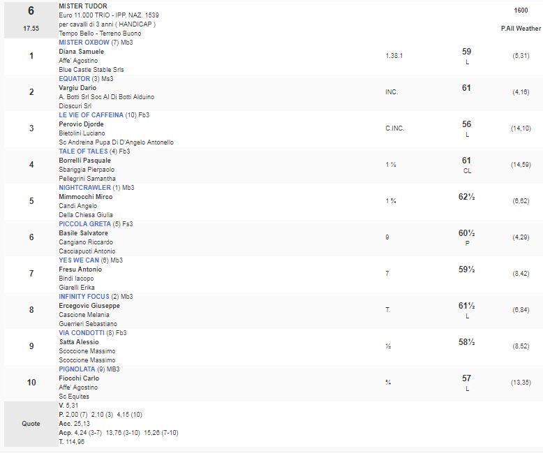 Ippica, Roma: Oggi 10/05 Risultati 5^ e 6^ Corsa Vincono Shiny Prince e Mister Oxbow 5^ Corsa Premio Haseltine vinta da Shiny Prince 6^ Corsa Premio Mister Tudor vinta da Mister Oxbow Condividi sul web: Fai clic per condividere su Facebook (Si apre in una nuova finestra) Facebook Fai clic per condividere su WhatsApp (Si apre in una nuova finestra) WhatsApp Fai clic per condividere su Telegram (Si apre in una nuova finestra) Telegram Fai clic per condividere su X (Si apre in una nuova finestra) X Fai clic qui per stampare (Si apre in una nuova finestra) Stampa Fai clic per inviare un link a un amico via e-mail (Si apre in una nuova finestra) E-mail Mi piace Caricamento... Correlati