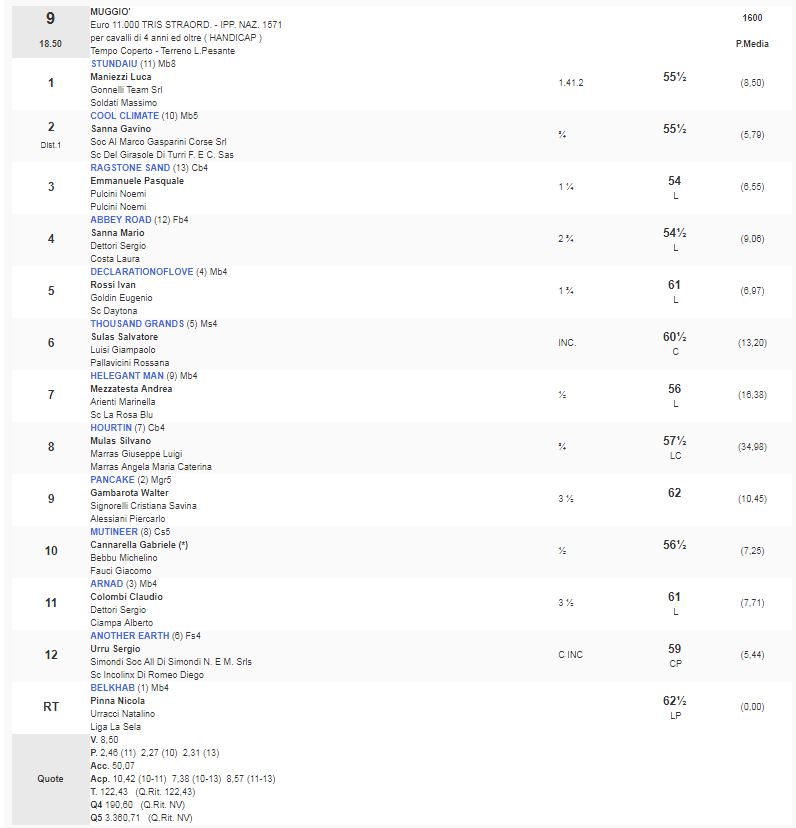 9^ Corsa Premio Muggiò vinta da Stundaiu