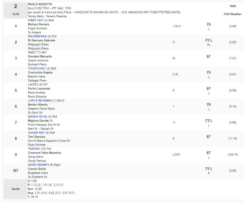 Ippica, Roma: Oggi 12/05 Risultati 1^ e 2^ Corsa Vincono Batellik e Pinky Guy 1^ Corsa Premio Brezza vinta da Batellik 2^ Corsa Premio Paolo Addotta vinta da Pinky Guy Condividi sul web: Fai clic per condividere su Facebook (Si apre in una nuova finestra) Facebook Fai clic per condividere su WhatsApp (Si apre in una nuova finestra) WhatsApp Fai clic per condividere su Telegram (Si apre in una nuova finestra) Telegram Fai clic per condividere su X (Si apre in una nuova finestra) X Fai clic qui per stampare (Si apre in una nuova finestra) Stampa Fai clic per inviare un link a un amico via e-mail (Si apre in una nuova finestra) E-mail Mi piace Caricamento... Correlati