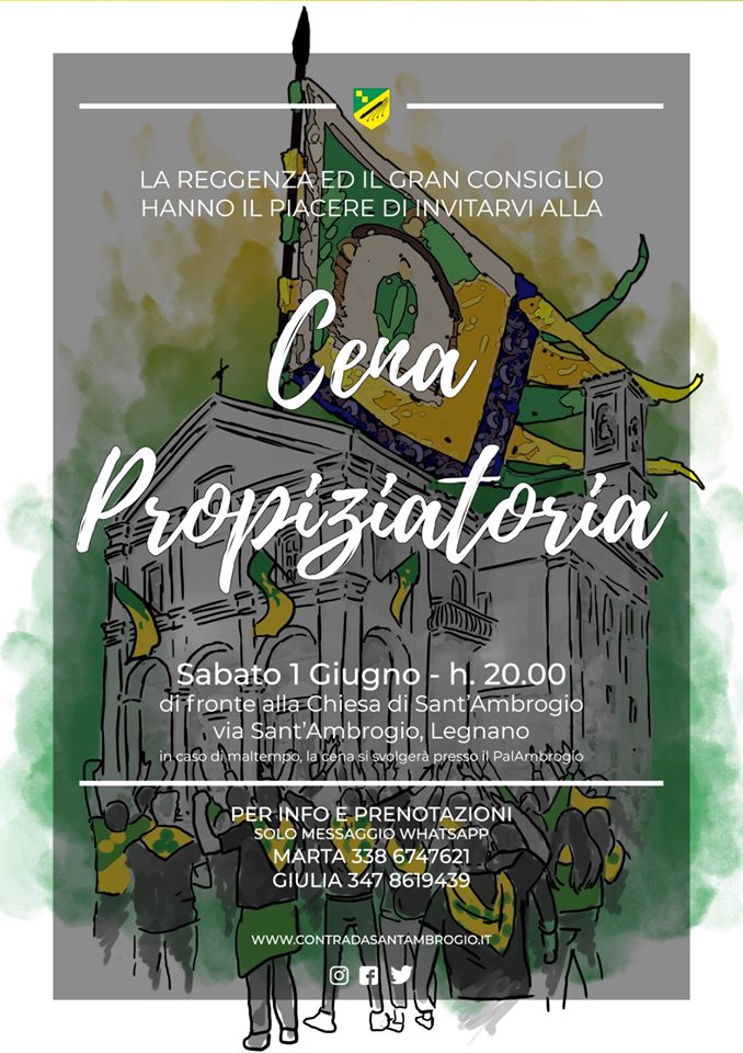Palio di Legnano, Contrada Sant’Ambrogio: 01/06 Cena Propiziatoria La cena dell’ansia e dell’attesa, la cena della speranza e dei sogni, la cena della carica e dell’orgoglio. LA CENA PROPIZIATORIA Sabato 1 Giugno – h20.00 Davanti alla nostra chiesetta (Via Sant’Ambrogio) Prenotazioni Whattsapp Giulia 3478619439 Marta 3386747621 Condividi sul web: Fai clic per condividere su Facebook (Si apre in una nuova finestra) Facebook Fai clic per condividere su WhatsApp (Si apre in una nuova finestra) WhatsApp Fai clic per condividere su Telegram (Si apre in una nuova finestra) Telegram Fai clic per condividere su X (Si apre in una nuova finestra) X Fai clic qui per stampare (Si apre in una nuova finestra) Stampa Fai clic per inviare un link a un amico via e-mail (Si apre in una nuova finestra) E-mail Mi piace Caricamento... Correlati