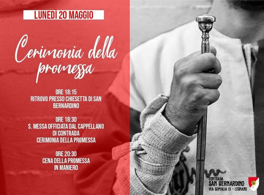 - H 18.30 Messa officiata dal Cappellano di Contrada e Cerimonia della Promessa