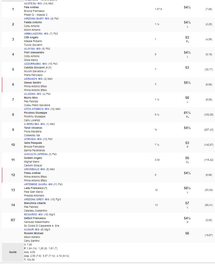 5^ Corsa premio Rotary Club Sassari vinta da Austesu da Frac di Montalbo e Burrascosa di proprietà di G. Pitzeri – C. Mascia e allenato da Francesco Brocca