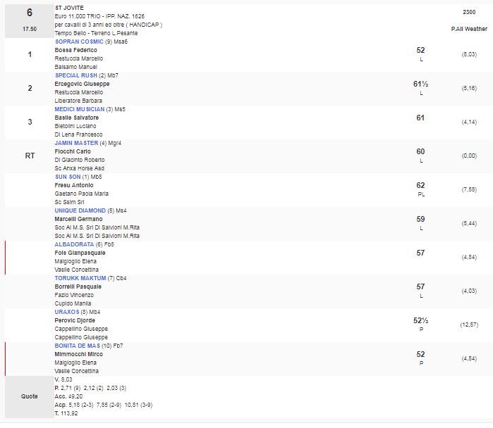 Ippica, Roma: Oggi 17/05 Risultati 5^ e 6^ Corsa Vincono Black Horus e Sopran Cosmic 5^ Corsa Premio Rep. Argentina vinta da Black Horus 6^ Corsa Premio St Jovite vinta da Sopran Cosmic Condividi sul web: Fai clic per condividere su Facebook (Si apre in una nuova finestra) Facebook Fai clic per condividere su WhatsApp (Si apre in una nuova finestra) WhatsApp Fai clic per condividere su Telegram (Si apre in una nuova finestra) Telegram Fai clic per condividere su X (Si apre in una nuova finestra) X Fai clic qui per stampare (Si apre in una nuova finestra) Stampa Fai clic per inviare un link a un amico via e-mail (Si apre in una nuova finestra) E-mail Mi piace Caricamento... Correlati