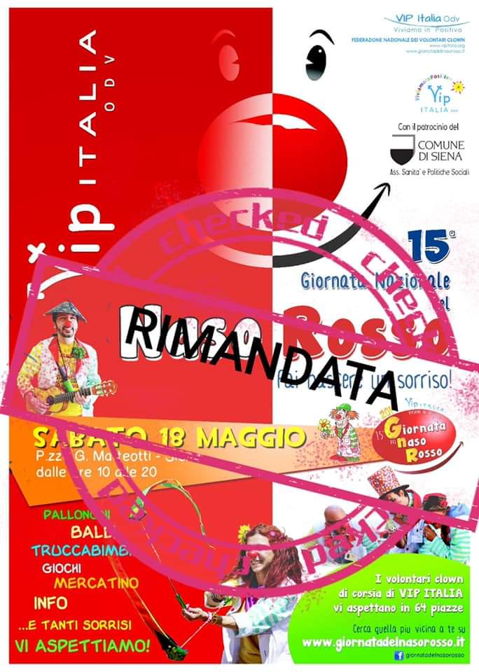 Purtroppo siamo costretti causa la pioggia e le previsioni pessime a rimandare la Giornata Nazionale del Naso Rosso di Siena prevista per oggi a data che verrà comunicata nei prossimi giorni.