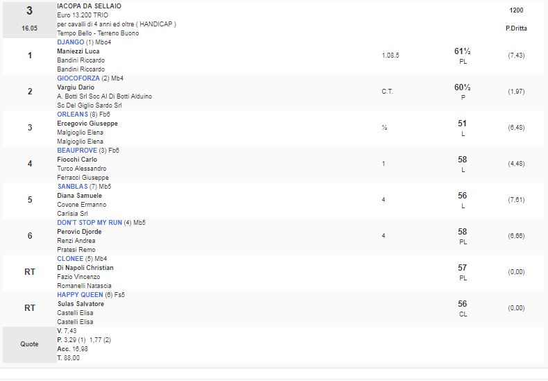 Ippica, Roma: Oggi 25/05 Risultati 3^ e 4^ Corsa Vincono Django e Lady of Fire 3^ Corsa Premio Iacopa da Sellaio vinta da Django 4^ Corsa Premio Ribero – II Tris vinta da lady of Fire Condividi sul web: Condividi su Facebook (Si apre in una nuova finestra) Facebook Condividi su WhatsApp (Si apre in una nuova finestra) WhatsApp Condividi su Telegram (Si apre in una nuova finestra) Telegram Condividi su X (Si apre in una nuova finestra) X Stampa (Si apre in una nuova finestra) Stampa Invia un link a un amico via e-mail (Si apre in una nuova finestra) E-mail Mi piace Caricamento... Correlati