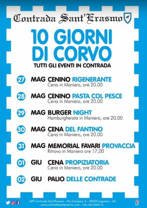 Ultimi dieci giorni per vivere la Contrada appieno, con un unico pensiero, con la voglia di stare solo con la tua famiglia biancazzurra.