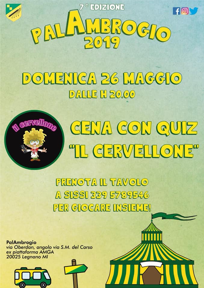 Palio di Legnano, Contrada Sant’Ambrogio: Oggi 26/05 Cena con Quiz “Il Cervellone” Non ci fermiamo mai!! Domenica cena con quiz by IL CERVELLONE!! Prenota il tuo tavolo per giocare e divertirti insieme a noi!! 💪🏻💛💚 Condividi sul web: Fai clic per condividere su Facebook (Si apre in una nuova finestra) Facebook Fai clic per condividere su WhatsApp (Si apre in una nuova finestra) WhatsApp Fai clic per condividere su Telegram (Si apre in una nuova finestra) Telegram Fai clic per condividere su X (Si apre in una nuova finestra) X Fai clic qui per stampare (Si apre in una nuova finestra) Stampa Fai clic per inviare un link a un amico via e-mail (Si apre in una nuova finestra) E-mail Mi piace Caricamento... Correlati