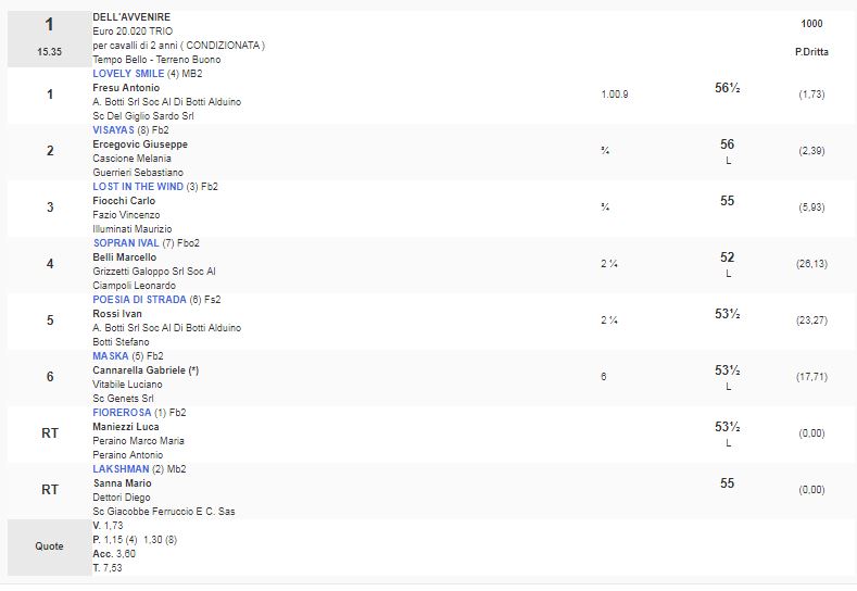 Ippica, Milano: Oggi 29/05 Risultati 1^ e 2^ Corsa Vincono Lovely Smileve Sicomoro 1^ Corsa Premio Dell’Avvenire vinta da Lovely Smile 2^ Corsa Premio Bormio vinta da Sicomoro Condividi sul web: Fai clic per condividere su Facebook (Si apre in una nuova finestra) Facebook Fai clic per condividere su WhatsApp (Si apre in una nuova finestra) WhatsApp Fai clic per condividere su Telegram (Si apre in una nuova finestra) Telegram Fai clic per condividere su X (Si apre in una nuova finestra) X Fai clic qui per stampare (Si apre in una nuova finestra) Stampa Fai clic per inviare un link a un amico via e-mail (Si apre in una nuova finestra) E-mail Mi piace Caricamento... Correlati