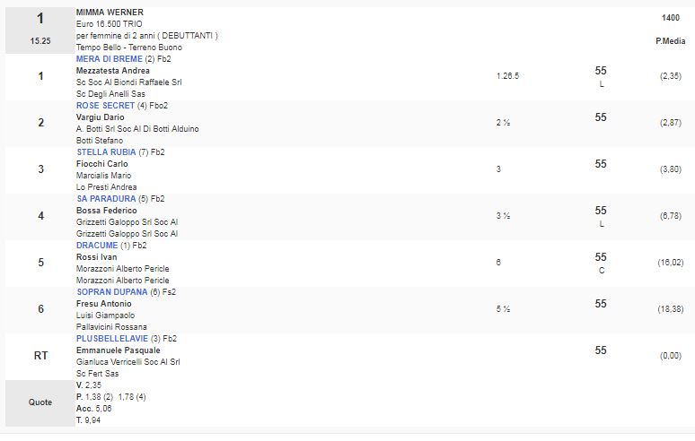 Ippica, Milano: Oggi 01/06 Risultati 1^ e 2^ Corsa Vincono Mera di Breme e George Rooke 1^ Corsa Premio Mimma Werner vinta da Mera di Breme 2^ Corsa Premio Giorgio Macchi vinta da George Rooke Condividi sul web: Fai clic per condividere su Facebook (Si apre in una nuova finestra) Facebook Fai clic per condividere su WhatsApp (Si apre in una nuova finestra) WhatsApp Fai clic per condividere su Telegram (Si apre in una nuova finestra) Telegram Fai clic per condividere su X (Si apre in una nuova finestra) X Fai clic qui per stampare (Si apre in una nuova finestra) Stampa Fai clic per inviare un link a un amico via e-mail (Si apre in una nuova finestra) E-mail Mi piace Caricamento... Correlati