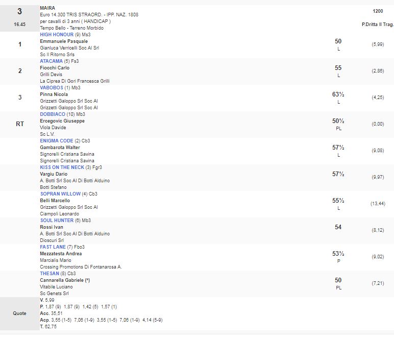 Ippica, Milano: Oggi 01/06 Risultati 3^, 4^ e 5^ Corsa Vincono High Honour, Elaire Noire e Dolcedo 3^ Corsa Premio Maira vinta da High Honour 4^ Corsa Premio Enrico Baragiola vinta da Elaire Noire 5^ Corsa Premio Cassinetta vinta da Dolcedo Condividi sul web: Fai clic per condividere su Facebook (Si apre in una nuova finestra) Facebook Fai clic per condividere su WhatsApp (Si apre in una nuova finestra) WhatsApp Fai clic per condividere su Telegram (Si apre in una nuova finestra) Telegram Fai clic per condividere su X (Si apre in una nuova finestra) X Fai clic qui per stampare (Si apre in una nuova finestra) Stampa Fai clic per inviare un link a un amico via e-mail (Si apre in una nuova finestra) E-mail Mi piace Caricamento... Correlati