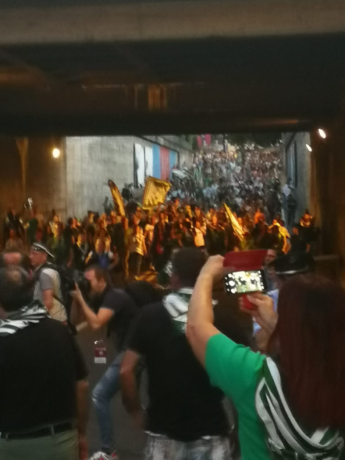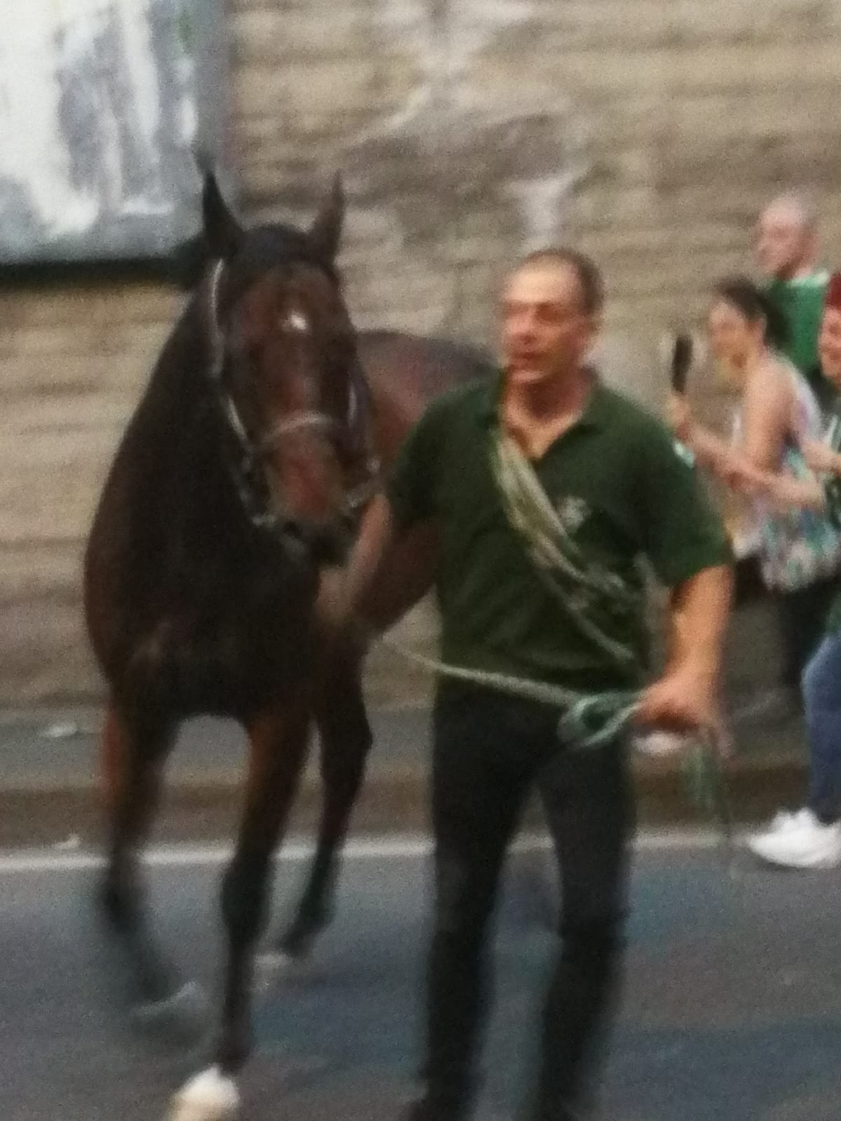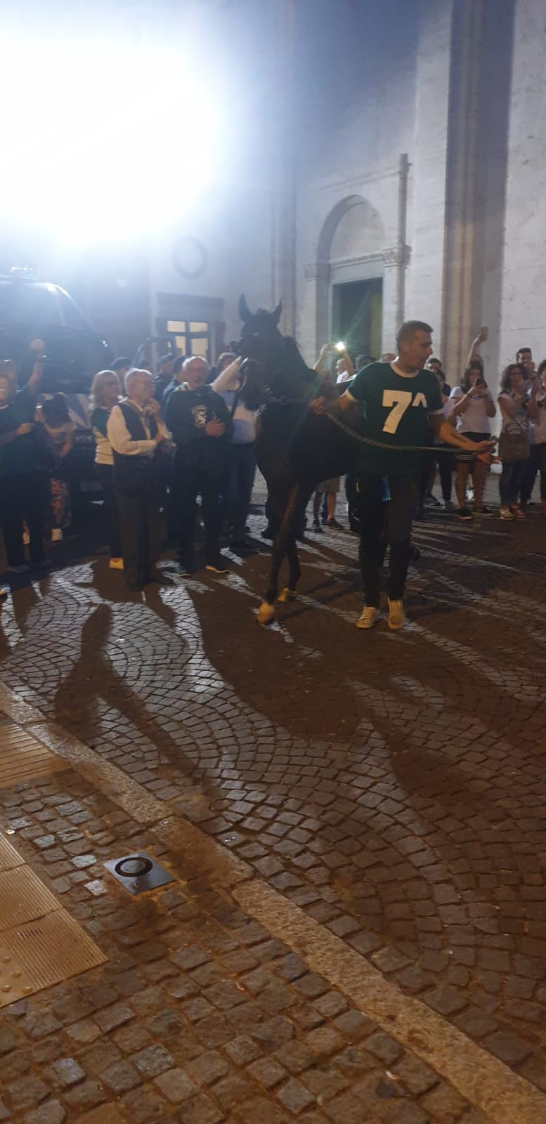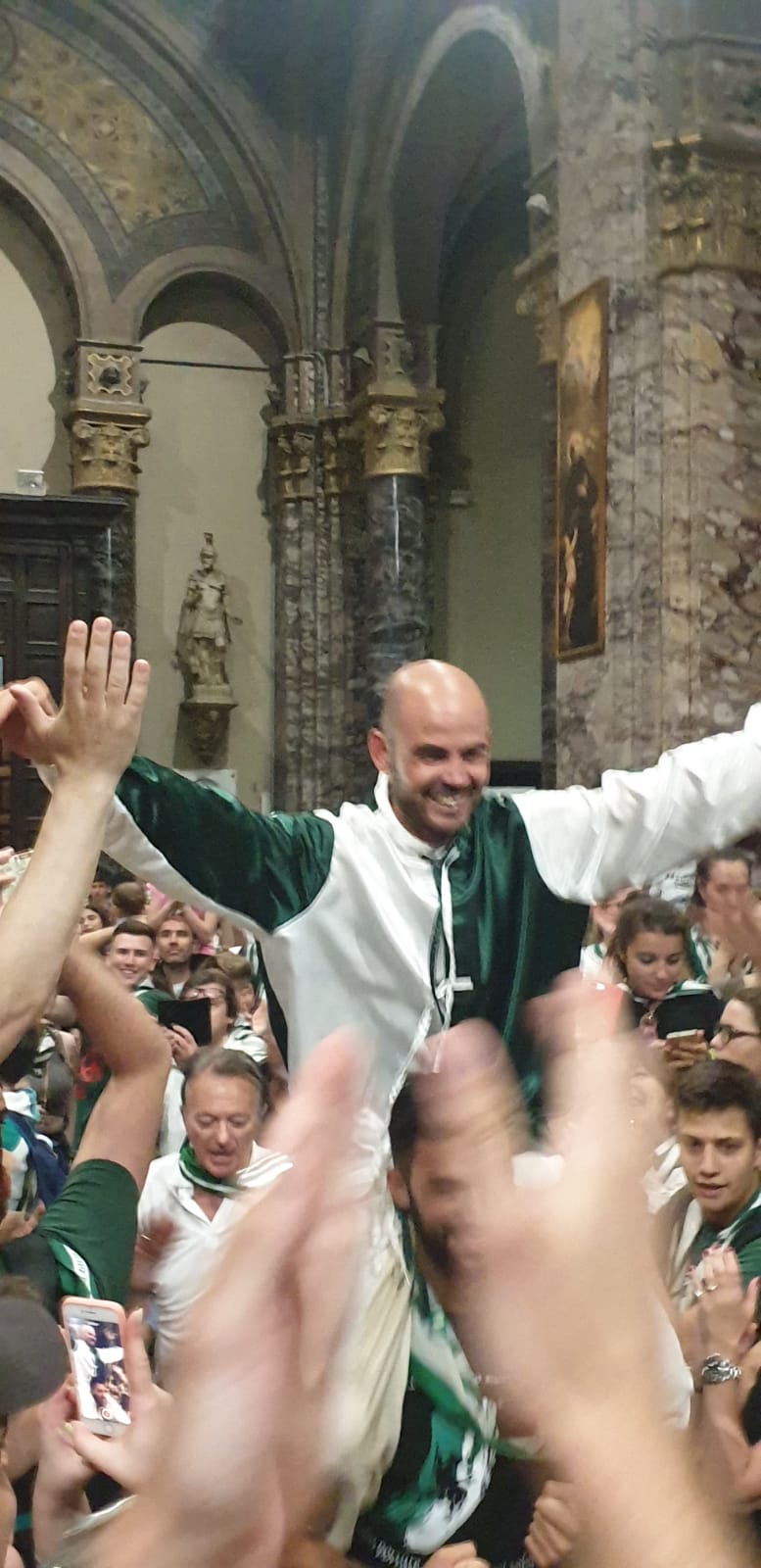 Come vi avevo promesso, oggi mi sono giunte le immagini e un video dal mio corrispondente da legnano, del giubilo della Contrada San Domenico, durante il percorso che porta dallo Stadio mari alla Chiesa della Contrada e poi al Maniero di Via Bixio. Qua nel video realizzato qall’interno del maniero potrete vedere le scene di gioia e di giubilo del popolo bianco-verde felice per questa vittoria voluta con la grinta e con il cuore dal fantino Antonio Siri detto “Amsicora”, dal Capitano Alessandro Bondioli doppiamente felice perchè ieri essendo il suo compleanno ha ricevuto il regalo più bello che un legnanese potesse ricevere, dal Gran Priore Vincenzo Saitta Salanitri, dalla Castellana Eleonora Cantoni, al suo primo Palio da Castellana, vincendolo immediatamente e da tutto il popolo di San Domenico.