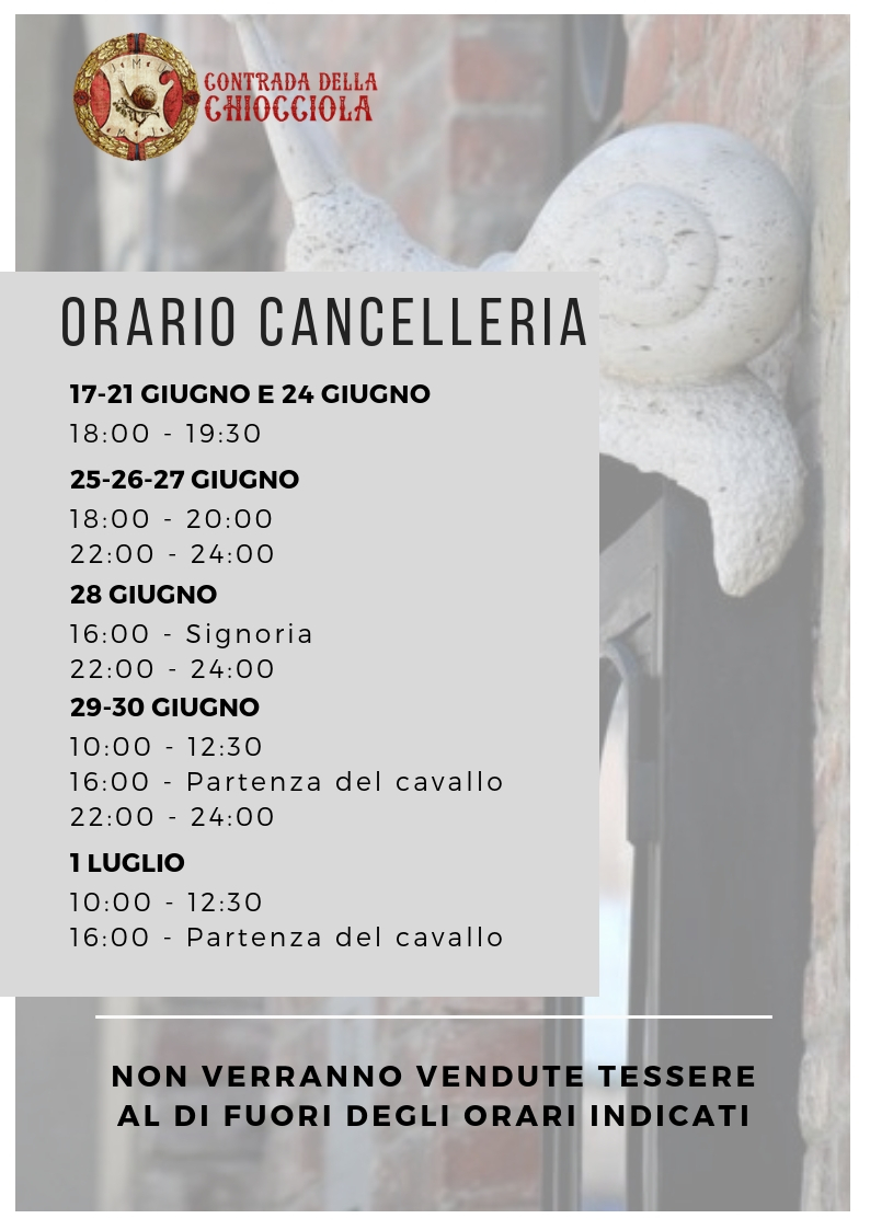 cancelleria@contradadellachiocciola.it o comunicata ai Cancellieri