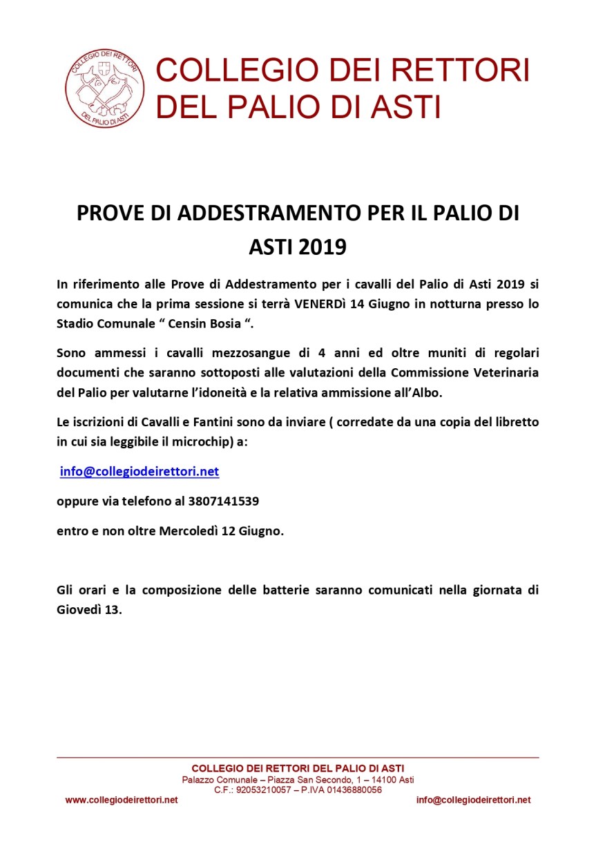 Mi è appena stata consegnata la comunicazione del collegio dei rettori di Asti per le Corse di Addestramento in notturna che si svolgeranno Venerdì 14/06 presso la pista dello stadio Censin-osia ad Asti.