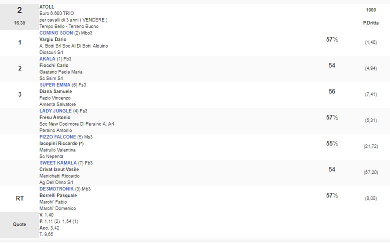 Ippica, Napoli: Oggi 07/06 Risultati 1^ e 2^ Corsa Vincono Penelope Queen e Coming Soon 1^ Corsa Premio Theodorica vinta da Penelope Queen 2^ Corsa Premio Atoll vinta da Comin Soon Condividi sul web: Fai clic per condividere su Facebook (Si apre in una nuova finestra) Facebook Fai clic per condividere su WhatsApp (Si apre in una nuova finestra) WhatsApp Fai clic per condividere su Telegram (Si apre in una nuova finestra) Telegram Fai clic per condividere su X (Si apre in una nuova finestra) X Fai clic qui per stampare (Si apre in una nuova finestra) Stampa Fai clic per inviare un link a un amico via e-mail (Si apre in una nuova finestra) E-mail Mi piace Caricamento... Correlati