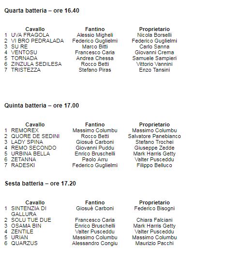 Si tratta di sei Batterie con inizio ale ore 15.30 e ultima batteria che si svolgerà alle ore 17.20.