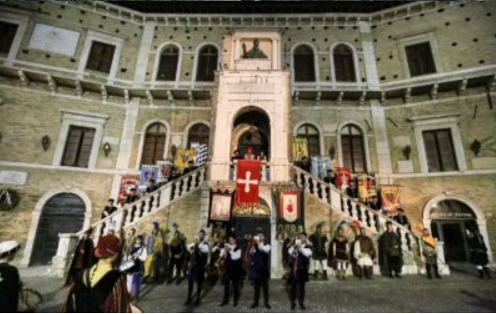 Ultima scena: i dieci priori delle contrade fermane, nominati e investiti dal Podestà nella chiesa cattedrale, fanno il loro ingresso nel Palazzo in piazza del Popolo. Il portone si chiude dietro di loro, da lì amministreranno la città per i successivi due mesi, conducendo, incorruttibili, una vita proba.