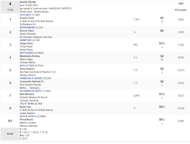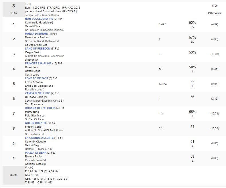 Ippica, Milano: Oggi 22/06 Risultati 3^ e 4^ Corsa Vincono Non Succedera Piu e Dulciboy 3^ Corsa Premio Teti vinta da Non Succedera Piu 4^ Corsa Premio Razza Felina vinta da Dulciboy Condividi sul web: Fai clic per condividere su Facebook (Si apre in una nuova finestra) Facebook Fai clic per condividere su WhatsApp (Si apre in una nuova finestra) WhatsApp Fai clic per condividere su Telegram (Si apre in una nuova finestra) Telegram Fai clic per condividere su X (Si apre in una nuova finestra) X Fai clic qui per stampare (Si apre in una nuova finestra) Stampa Fai clic per inviare un link a un amico via e-mail (Si apre in una nuova finestra) E-mail Mi piace Caricamento... Correlati