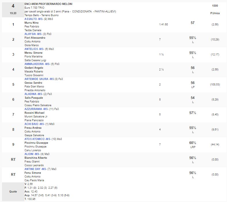 Ippica, Sassari: Ieri 05/07 Risultati 4^ Corsa Vince Assalto 4^ Corsa Premio Enci – Mem. Prof. Bernardo Meloni vinta da Assalto da Vidoc III e Quotada di proprietà di Daniela Tedde e allenato da Pes Fabrizio Condividi sul web: Fai clic per condividere su Facebook (Si apre in una nuova finestra) Facebook Fai clic per condividere su WhatsApp (Si apre in una nuova finestra) WhatsApp Fai clic per condividere su Telegram (Si apre in una nuova finestra) Telegram Fai clic per condividere su X (Si apre in una nuova finestra) X Fai clic qui per stampare (Si apre in una nuova finestra) Stampa Fai clic per inviare un link a un amico via e-mail (Si apre in una nuova finestra) E-mail Mi piace Caricamento... Correlati