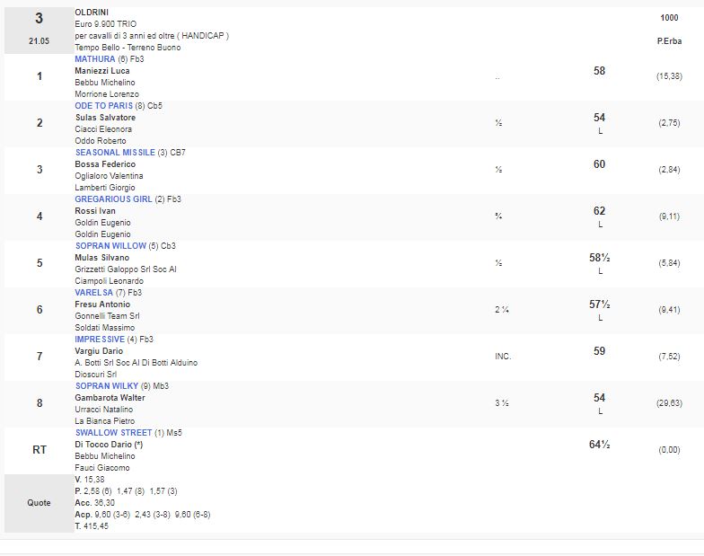 3^ Corsa Premio Oldrini vinta da Mathura da Mujahid e Mandoki