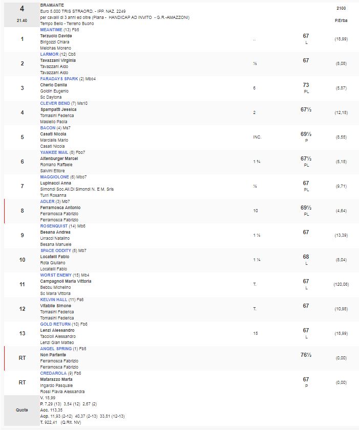 Ippica, Varese: Oggi 09/07 Risultati 3^ e 4^ Corsa Vincono Poesia di Strada e Meantime 3^ Corsa Premio Guido Reni vinta da Poesia di Strada 4^ Corsa Premio Bramante vinta da Meantime Condividi sul web: Fai clic per condividere su Facebook (Si apre in una nuova finestra) Facebook Fai clic per condividere su WhatsApp (Si apre in una nuova finestra) WhatsApp Fai clic per condividere su Telegram (Si apre in una nuova finestra) Telegram Fai clic per condividere su X (Si apre in una nuova finestra) X Fai clic qui per stampare (Si apre in una nuova finestra) Stampa Fai clic per inviare un link a un amico via e-mail (Si apre in una nuova finestra) E-mail Mi piace Caricamento... Correlati