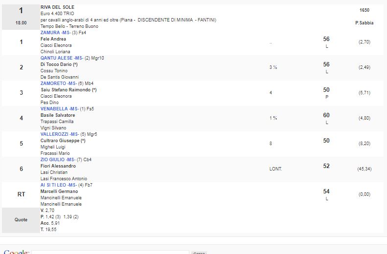 Ippica, Follonica: Oggi 12/07 Risultati 1^ Corsa Vince Zamura
