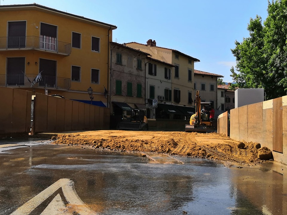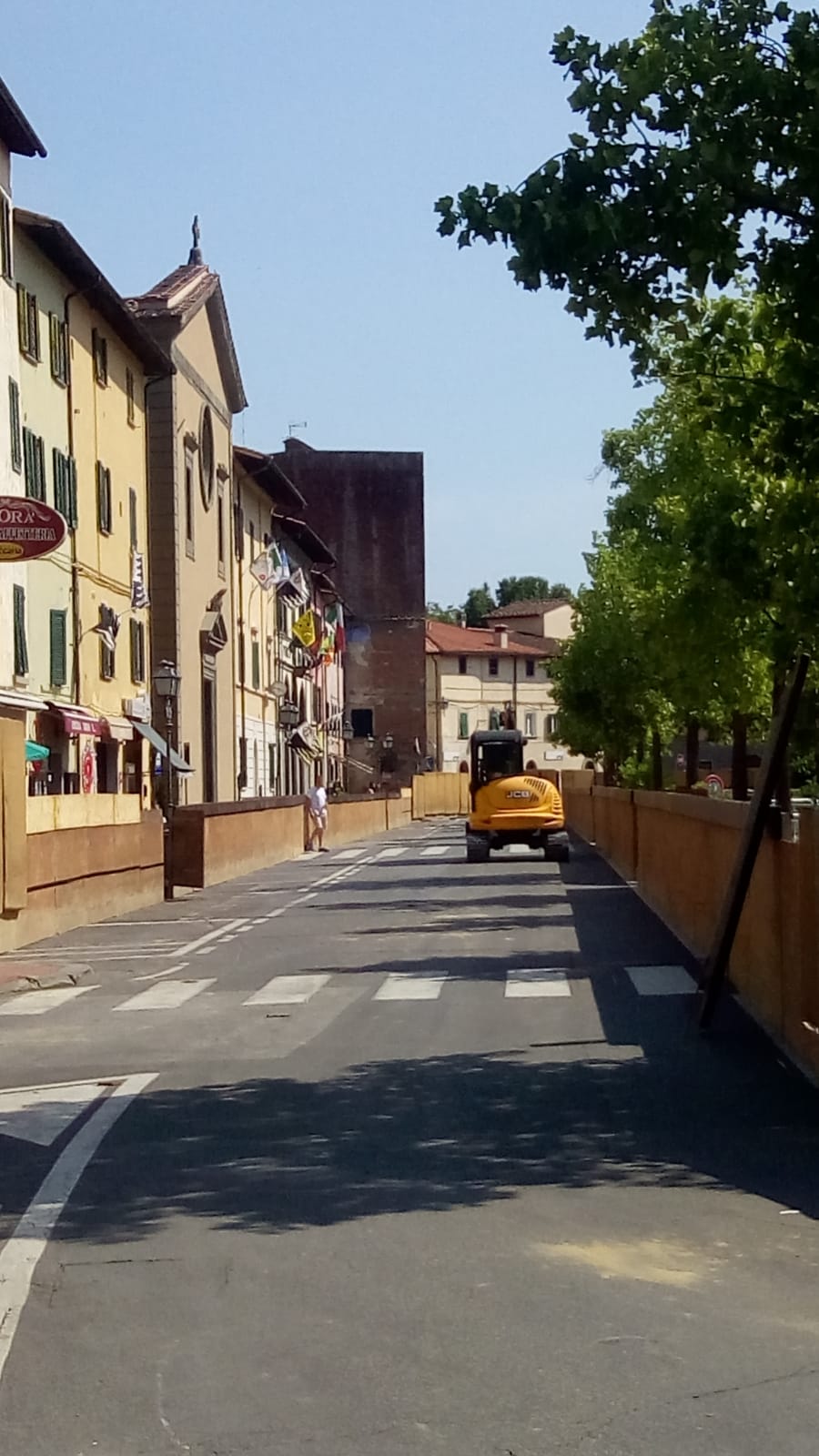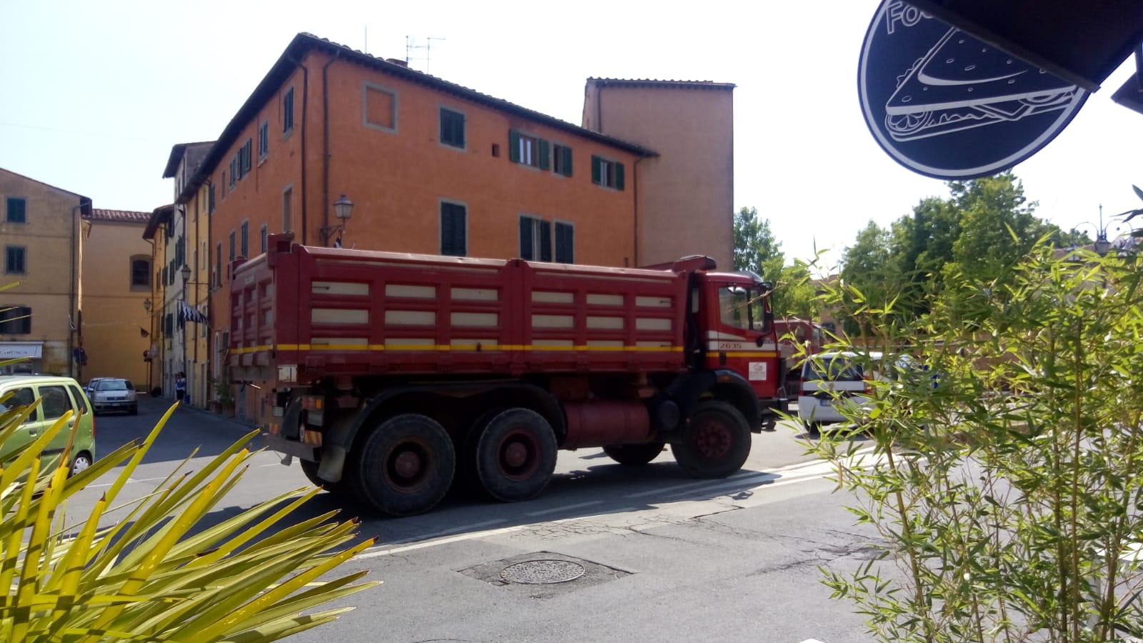 Oggi 18/07 a Biientina in Piazza Vittorio Emanuele II°, già sistemata e con tutte le strutture montate, sono arrivati i camion con la terra per la stesura sulla Pista del Palio.