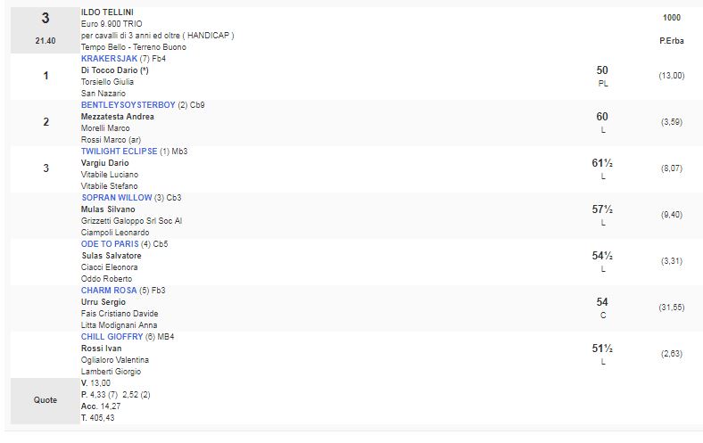 3^ Corsa Premio Ildo Tellini vinta da Krakersjac da Oxbow e My First One