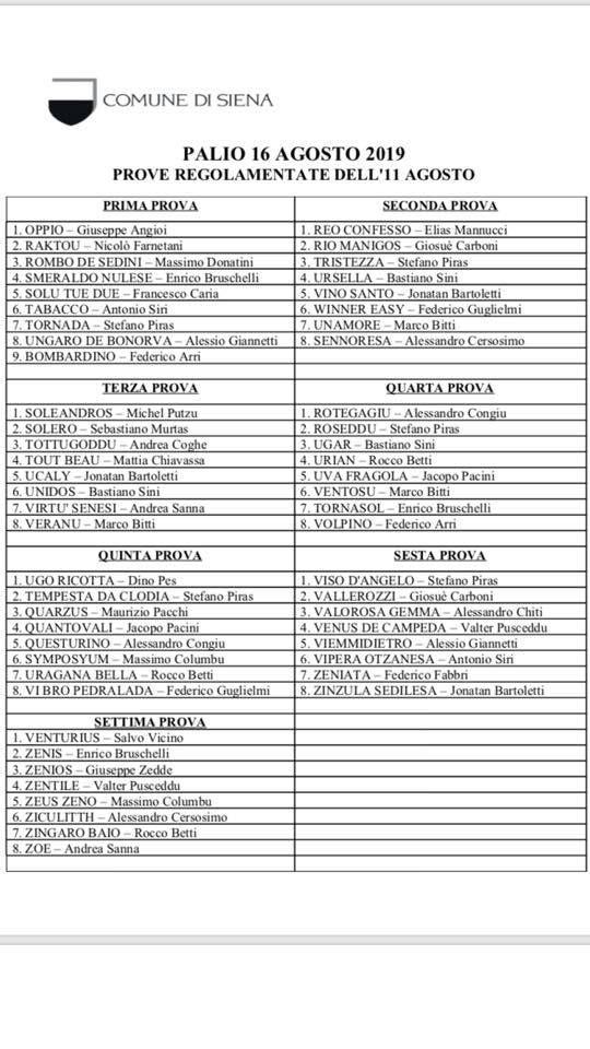 Ecco le batterie delle Prove Regolamentate di domani 11/08