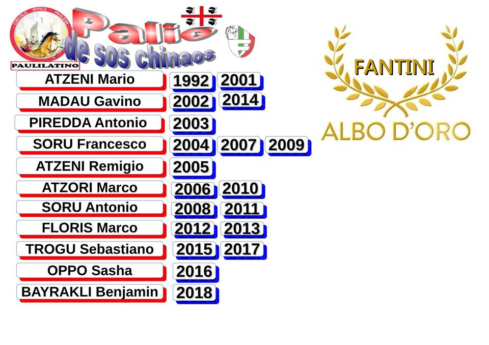 LA SFILATA: Tutti i partecipanti dei rioni vestiti con i colori che li rappresentano, con i relativi fantini e cavalli, si incontrano nel primo pomeriggio, solitamente verso le ore 16 in Piazza Indipendenza, Su Pangulieri. Qui inizia la “grande festa”, lo speaker annuncia ogni singolo rione che accede al centro della piazza per presentarsi agli spettatori con coreografie e cori mentre gli altri rioni rispondono allegramente con sfottò. Al termine di tutte le presentazioni, davanti alla fontana simbolo del paese, Su Cantaru Mannu, si chiama il rione detentore del palio dell’anno precedente a cui viene consegnato lo stendardo e il trofeo in palio nell’anno corrente e si inizia la sfilata che prevede appunto l’apertura del rione detentore del palio dall’anno precedente con il gonfalone del comune e il gonfalone posto in palio per l’anno in corso, a seguire gli altri “chinaos” in base all’ordine di estrazione.