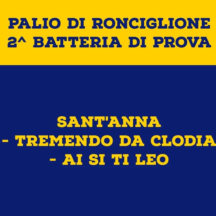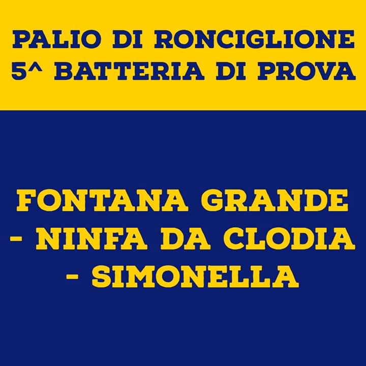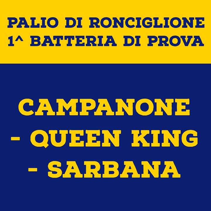 Inizio ore 16.00. L’ordine d’estrazione è valevole anche come ordine di sfilata alle spalle di Fontana Grande, rione vincitore nel 2018, che aprirà il Corteo Storico che precede le Corse a Vuoto!
