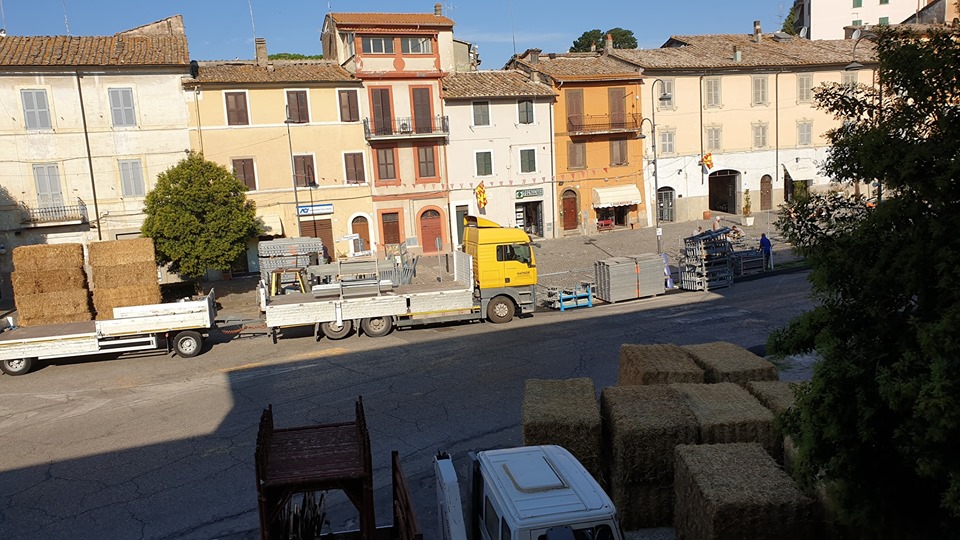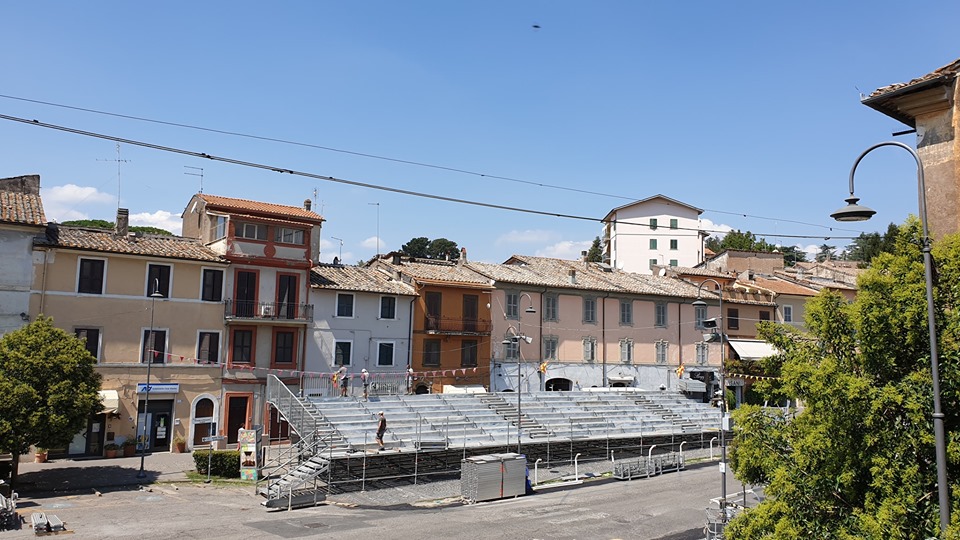 Oggi 22/08 a Ronciglione sono iniziati in modo spedito i lavori di montaggio della Tribuna “La Mossa”. Come si può vedere dalle foto sotto i lavori procedono spediti per finire il montaggio della Tribuna “La Mossa” nel minor tempo possibile.