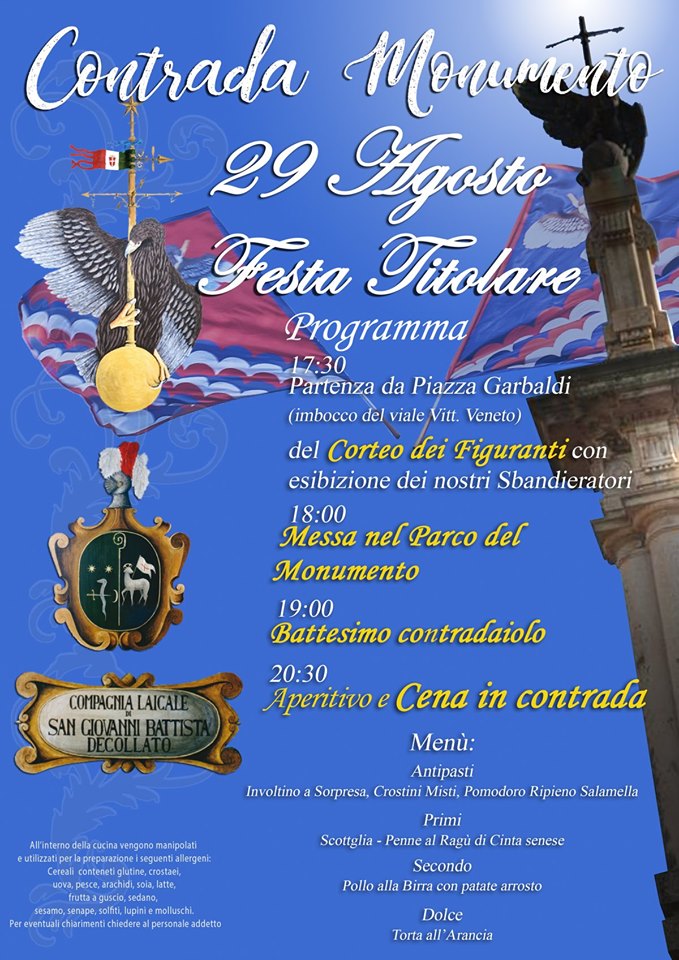 In occasione del Patrono San Giovanni Battista la Contrada del Monumento Organizza:
