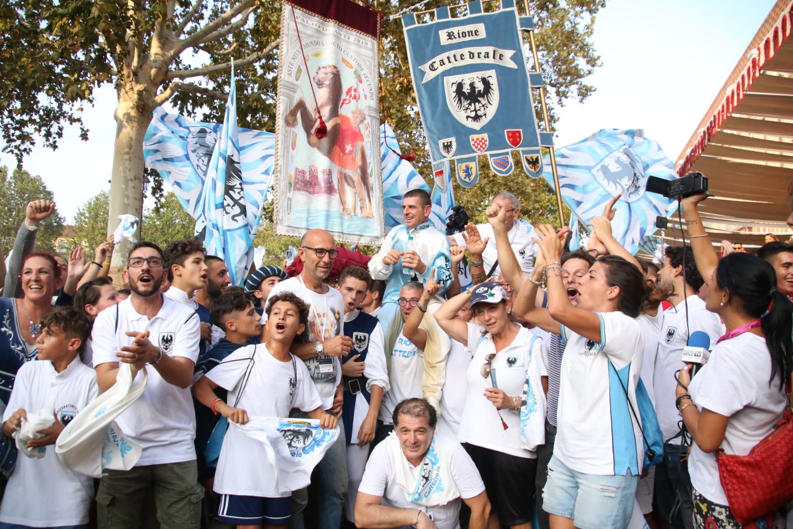“Oggi ad Asti in Piazza Alfieri si è fatta la storia”. Queste le parole del Vice Rettore del Rione Cattedrale, Flavio Arnone, durante il Giubilo post Palio di Asti, ieri 01/09.