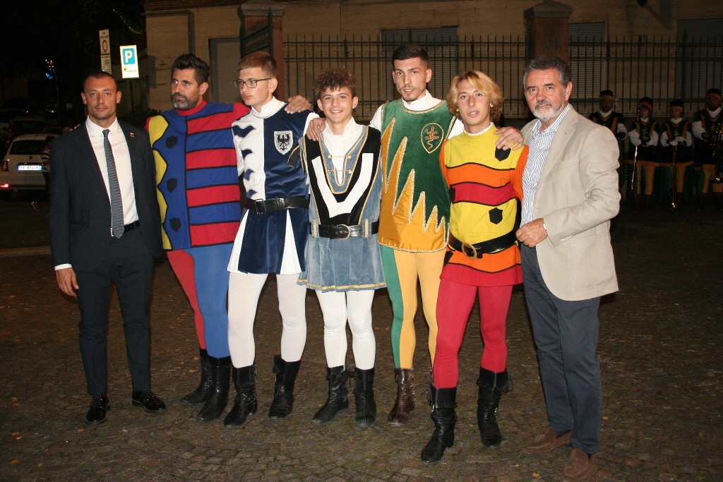 “Una serata dal tema inedito quella programmata Martedì 17 Settembre dal Panathlon Club Asti al Centro Culturale San Secondo. “Bandiere al vento” il titolo di una conviviale, affidata dal Presidente Mario Vespa alla “regia” del socio Rolando Doglione, che ha proposto quale motivo conduttore l’arte dello sbandierare ed alcuni dei suoi protagonisti astigiani. Un feeling tra il Club degli sportivi “indigeni” ed il Palio di Asti iniziato nel Settembre 2014 con la presenza ad una serata panathletica di Maurizio Farnetani “Bucefalo” e proseguito poi negli anni con l’istituzione del Premio Panathlon al “Paliotto”, a partire dal 2016 vinto dagli sbandieratori di Santa Caterina, San Pietro, Torretta e Cattedrale. La serata, iniziata con il ricordo di Felice Appiano, nel 1962 tra i “padri fondatori” del Panathlon Club Asti e nel 1967 “pioniere” della rinascita del Palio di Asti (fino al 1972 fu prima mossiere e Presidente della Commissione Tecnica), ha avuto quale ospite il Capitano del Palio Michele Gandolfo, “testimone” dell’ingresso quale nuovo socio di Alberto Zappa, negli anni medico sociale di diverse società sportive astigiane ed attuale responsabile della Commissione Cavalli del Borgo Santa Maria Nuova. Un programma che si è sviluppato dapprima con l’esibizione dei “singolaristi” Mattia Monticone, Fabrizio Lano, Diego Vigna, Federico Rolla e Alex Ferello, per proseguire nel dopo cena con gli interventi di G.Franco Castaldo (Presidente A.S.T.A.), Silvio Quirico (Rettore San Lazzaro), Giovanni Binello (Rettore Viatosto), Beppe Monticone (Rettore Cattedrale, che nell’occasione ha annunciato per Sabato 26 Ottobre la cena della vittoria, probabilmente in P.za Cattedrale) e Daniele Cioffi (Resp. Militia Insignibus Civitatis Astensis). Con a supporto immagini e testimonianze dell’attività svolta e degli eccellenti risultati raggiunti dai rispettivi singoli gruppi a livello nazionale. Per il Panathlon astigiano, che dal 20 al 22 Settembre sarà in Emilia per la tradizionale gita sociale con visita al Museo “Ferrari” di Maranello e l’Interclub con i soci del Club di Reggio Emilia, si annuncia per Domenica 29 Settembre al Circ. “Dovano” della WayAssauto l’11a edizione del Mem. “Giorgio De Alexandris”, gara di bocce a “coppie integrate” composte da normodotati e diversamente abili. Una manifestazione a ricordo dello storico fondatore e primo Presidente del G.S.H. Pegaso, anche valida come 5° Campionato Italiano del Distretto Italia del Panatlon International.”